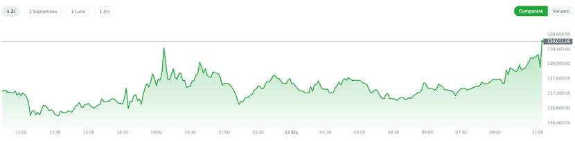 The highest Bitcoin price recorded was 293,800 RON on April 14, 2021, and the lowest BTC price was 0.34 RON, when BTC began trading in 2010.