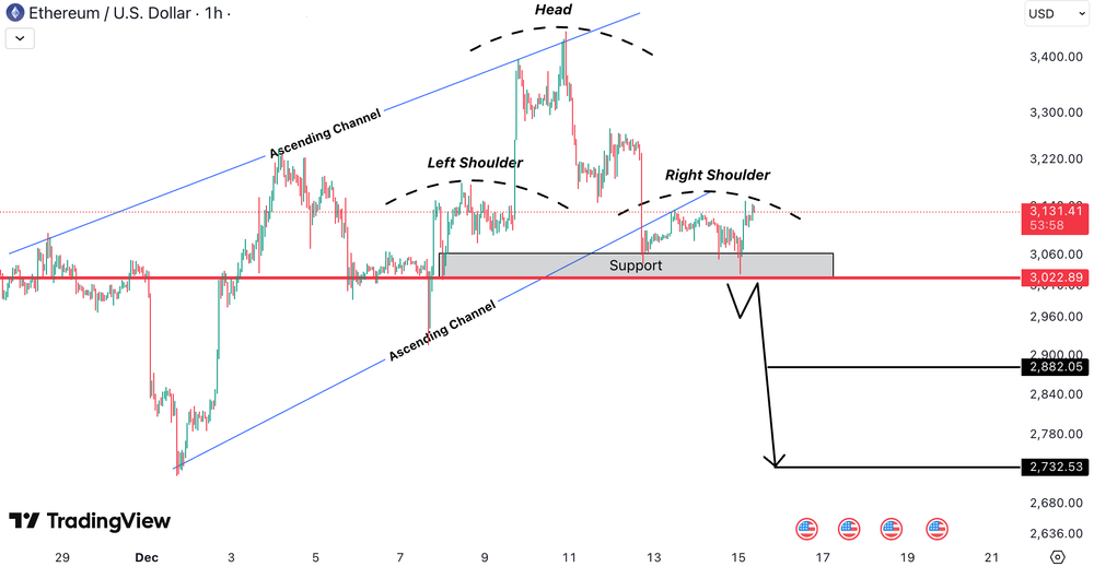 ETHUSD: 1% – 3% DOWN, Head and Shoulders
