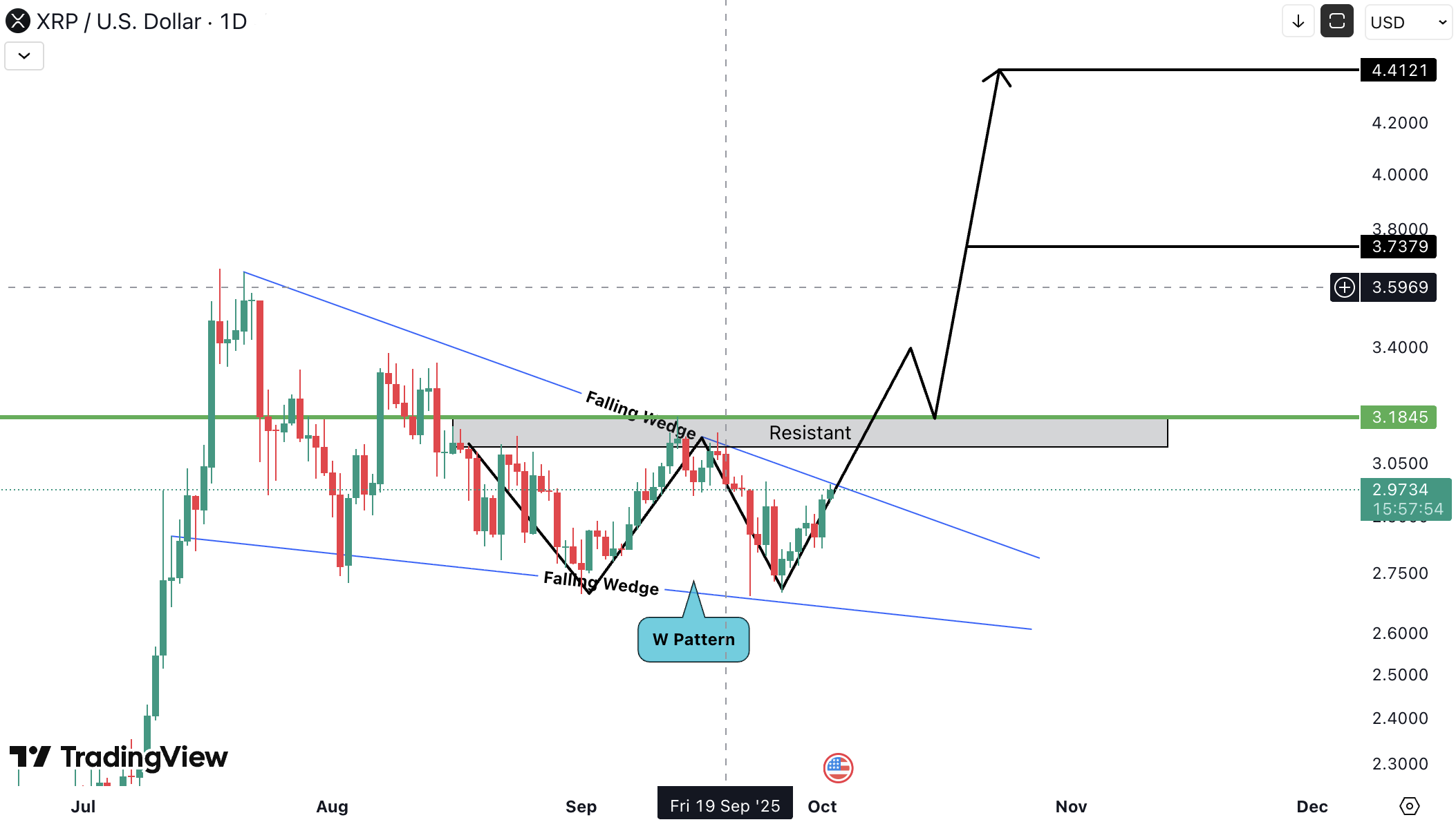 Such a move would also complete a W-type pattern, further supporting the bullish case. If confirmed, potential upside targets are: