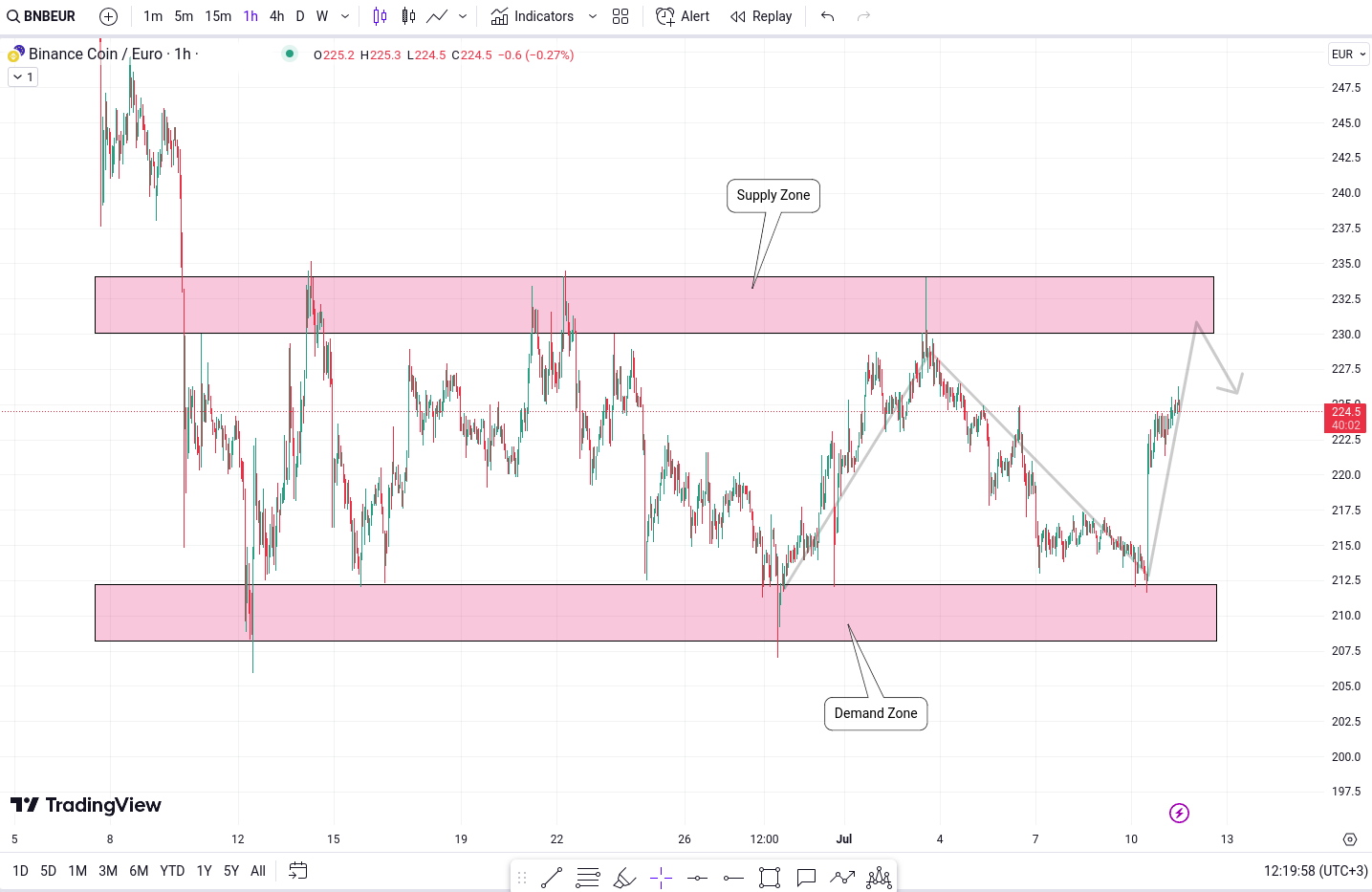 Apropierea de zona de suport sugereaza ca un numar considerabil de participanti la piata ar putea fi interesati sa vanda detinerile lor BNB/EUR, ceea ce ar putea duce la o presiune descendenta asupra preturilor.