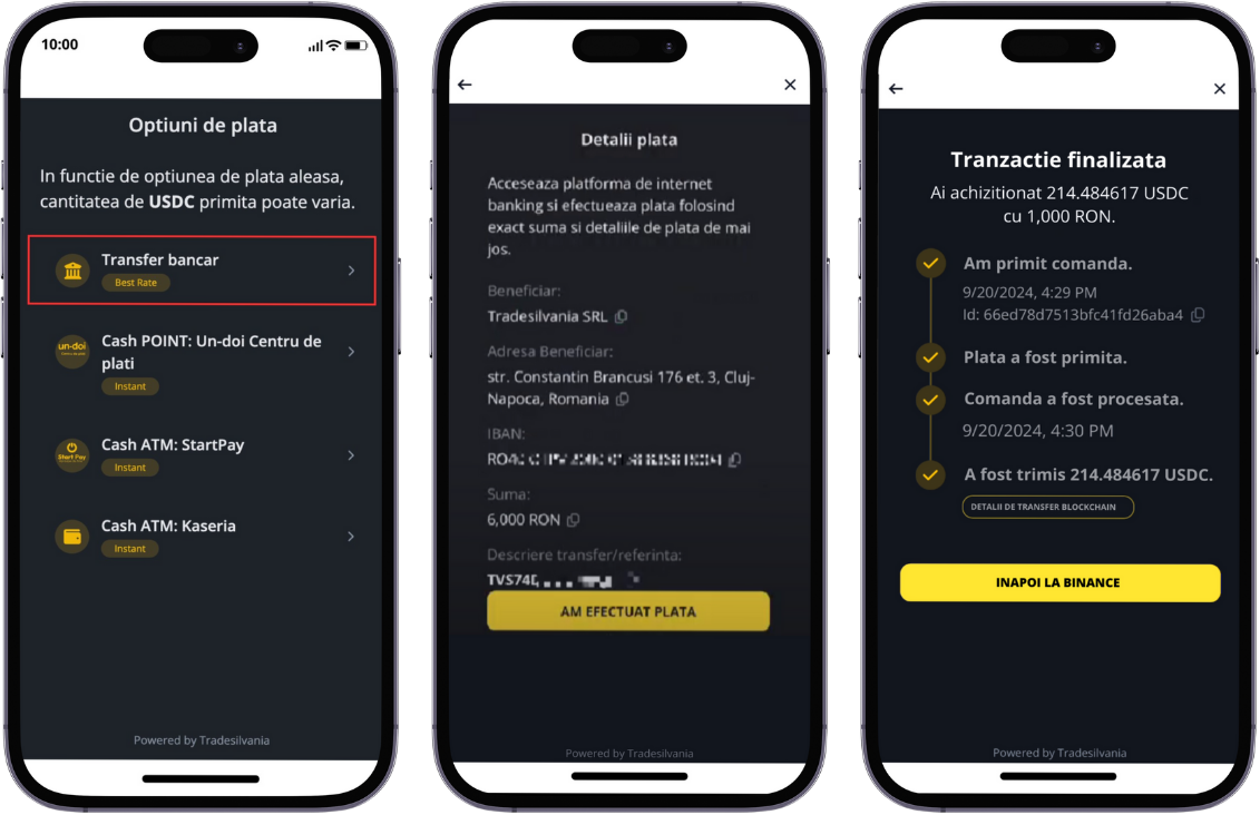 Cum sa cumperi crypto cu RON cash pe Binance prin Tradesilvania RAMP