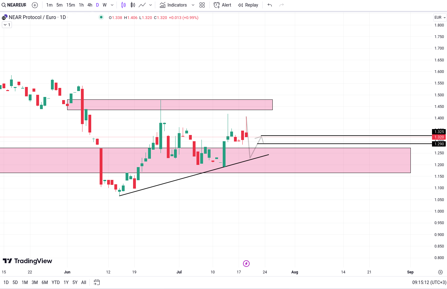 NEAR se afla aproape de zona sa cruciala de suport. Se asteapta o inversare bullish din aceasta zona de suport.