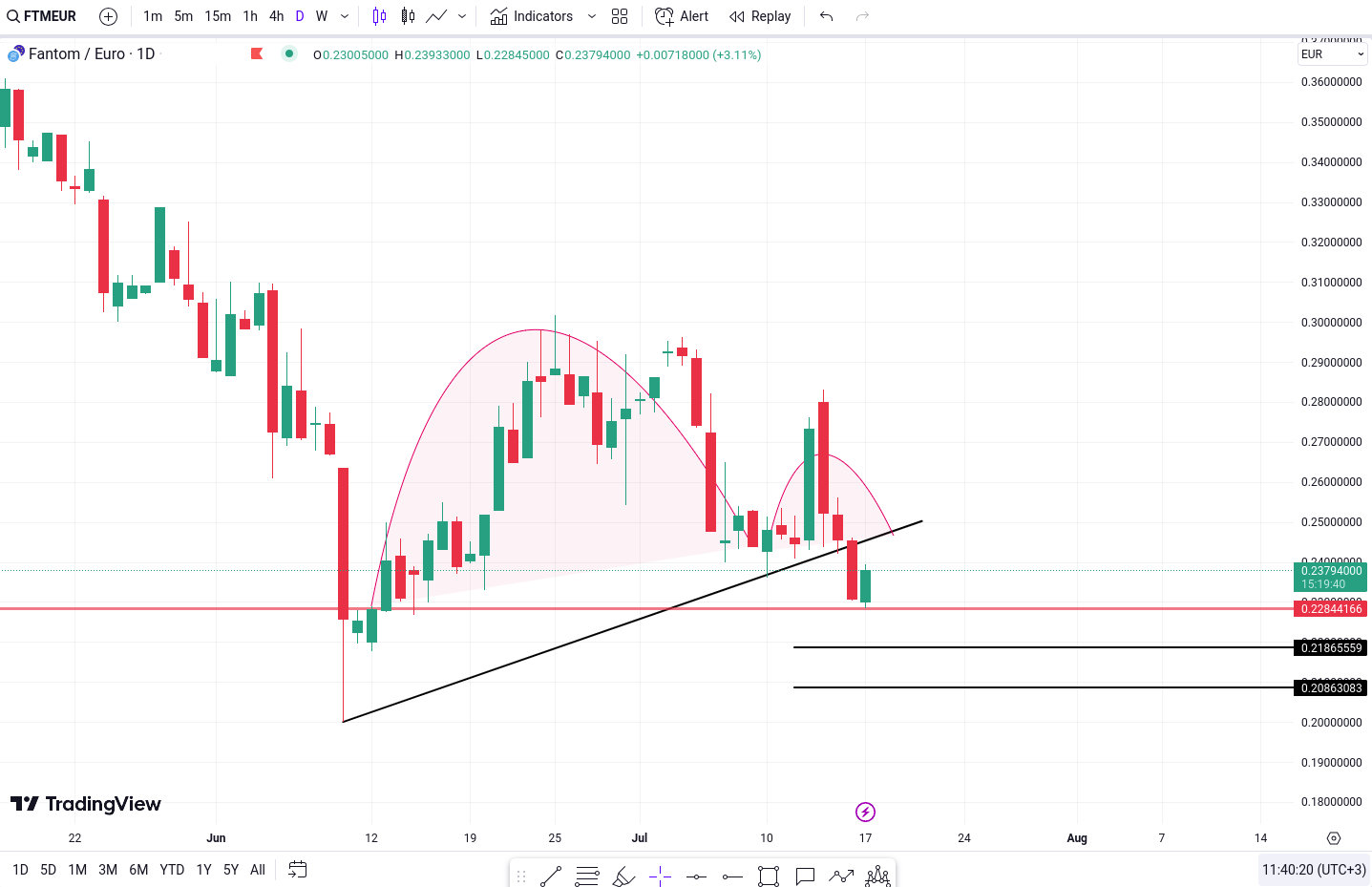 In ceea ce priveste FTM, observam formarea unui model invers de tip „Cup and Handle”, ceea ce sugereaza o perspectiva potential bearish in zilele urmatoare.