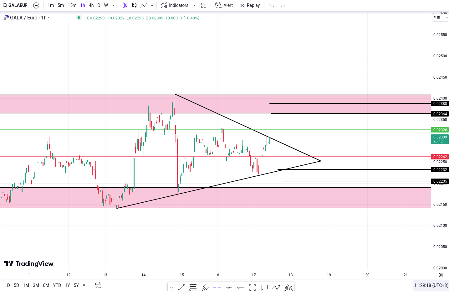 GALA prezinta in prezent un model triunghiular, indicand o faza de consolidare si posibilitatea unei spargeri in viitorul apropiat.