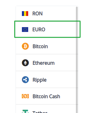 2. Din meniul din partea stanga selecteaza EURO: