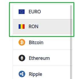 2. Din meniul din partea stanga selecteaza RON sau EURO: