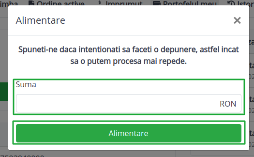 3. Dupa ce ai selectat RON sau EURO apasa pe butonul Alimentare:
