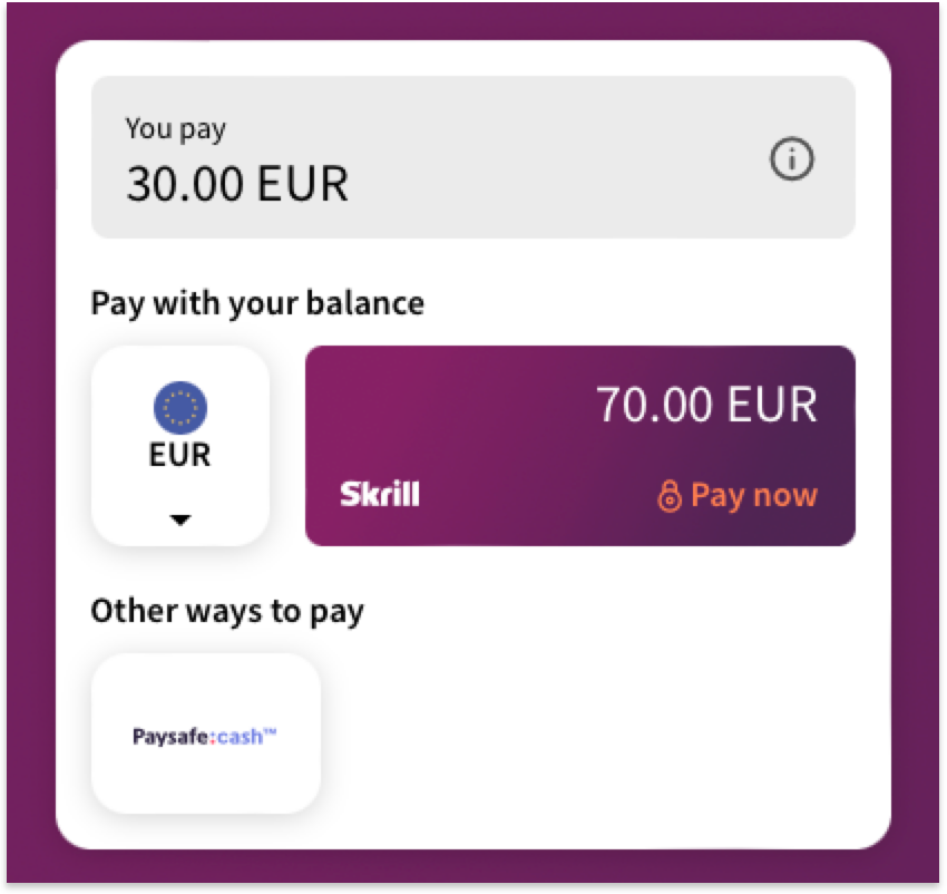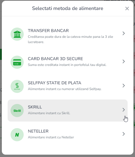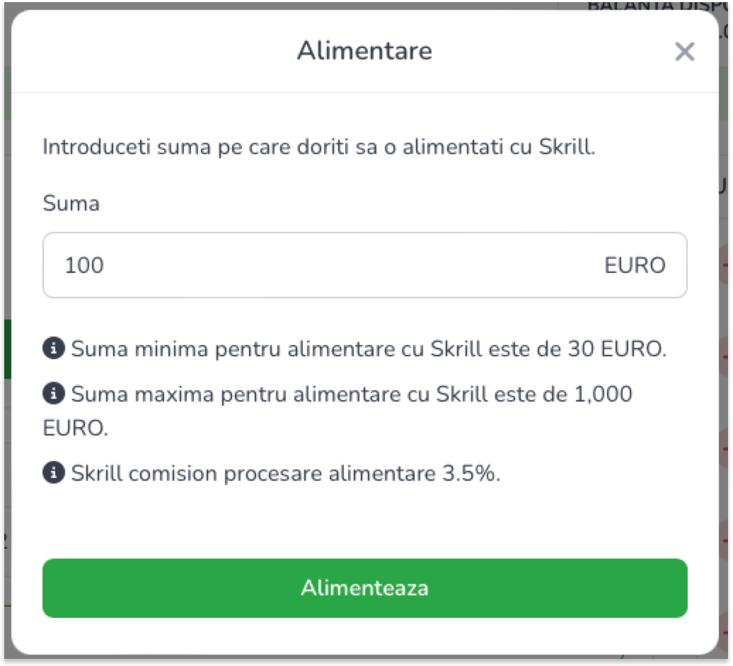 Nota: Limita minima de alimentare Skrill este de 30 EURO.