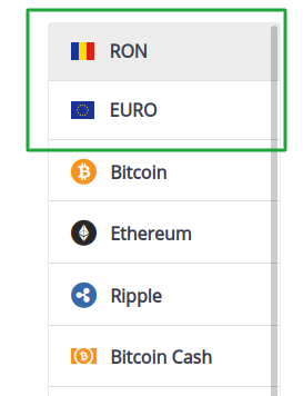 2. Selectezi RON sau EURO