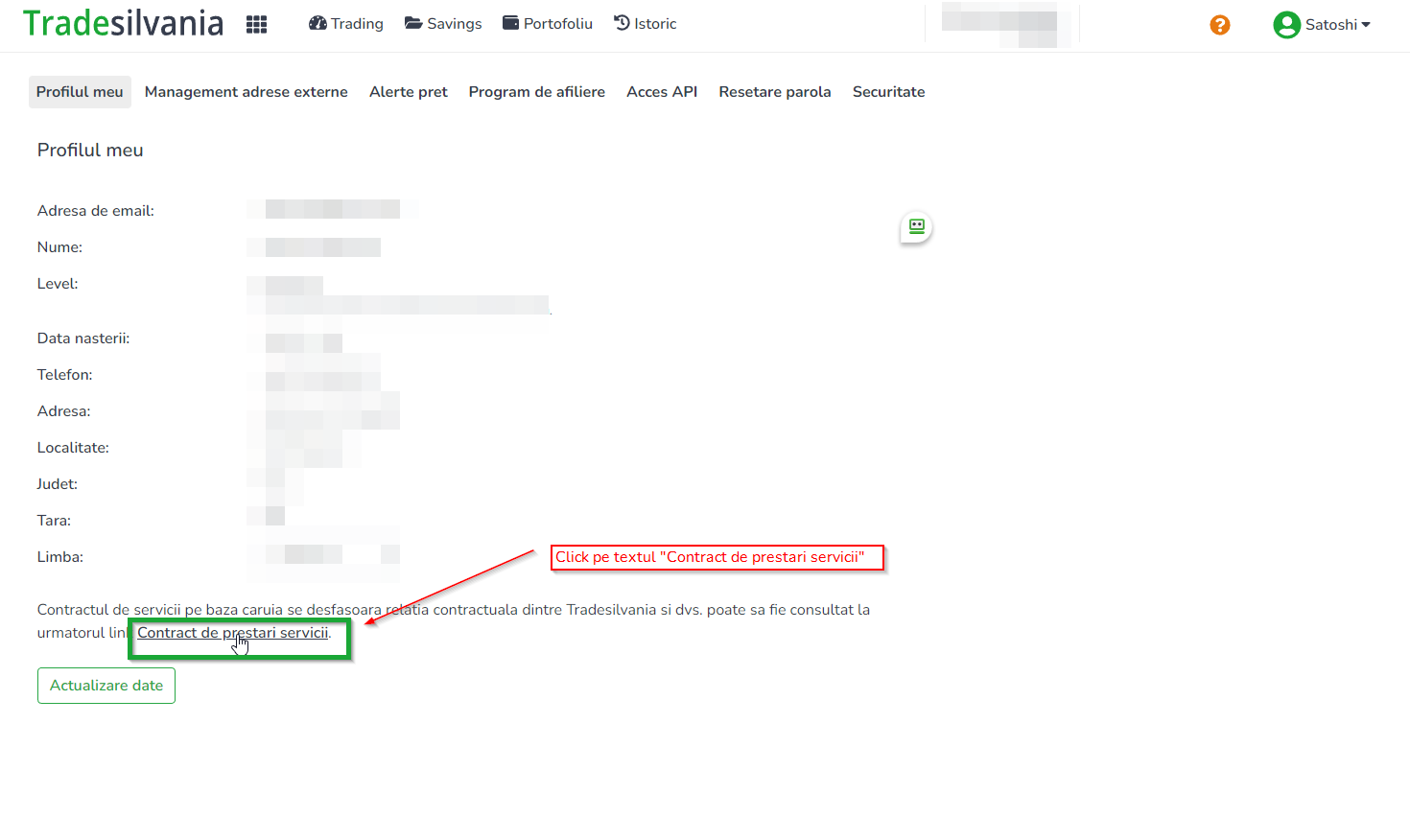 Contractul de Servicii (Client Agreement) reprezinta contractul pe baza caruia se desfasoara relatia contractuala dintre noi (Tradesilvania) si tine (Clientul).